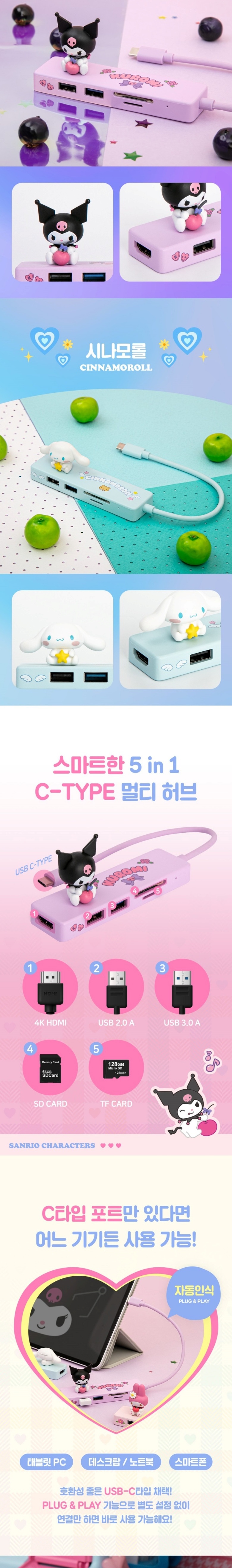 • 39900 산리오 멀티허브 시나모롤 USB C타입 5in1