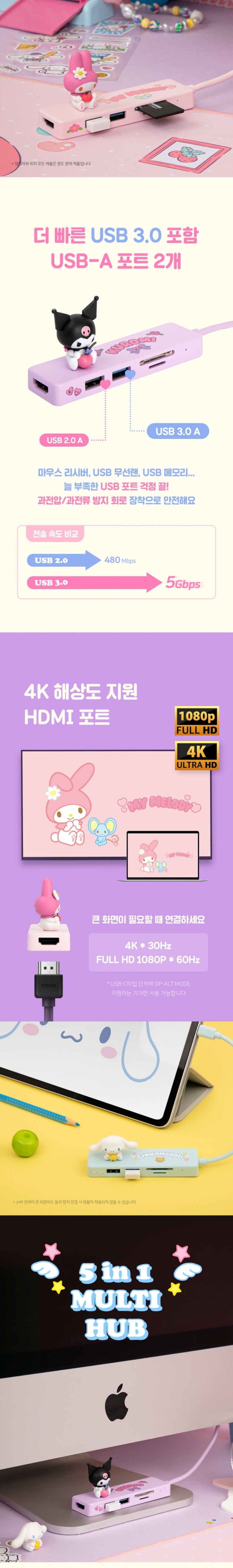 39900 산리오 멀티허브 시나모롤 USB C타입 5in1 요약정보 및 구매