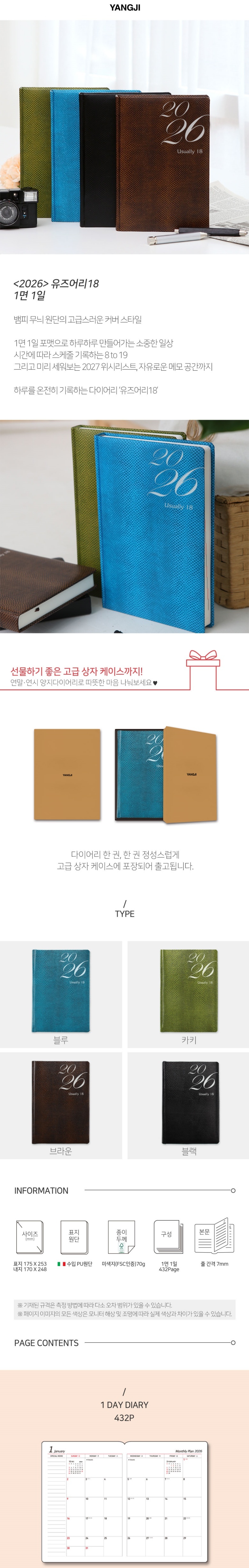 양지 다이어리가 내용이나 디자인도 단순하면서 사용하기 좋은 제품인데 그 중 이 디자인이 가장 고급진 커버라 사용하면서도 좀 기분이 좋습니다 해외 상품이 불필요하게 비싸서 별로인데 국내 재품인데 가격도 적당하고 아주 만족스럽습니다~ (스마트스토어에서 등록된 구매후기)