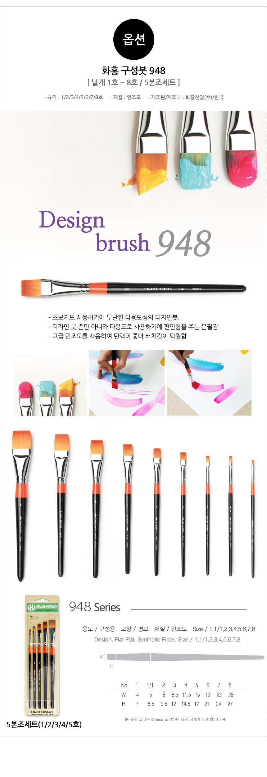 • 화홍 구성붓 948 8호 낱개 다용도 디자인 납작붓 미술용품