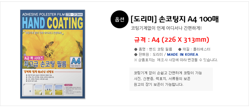 아이 놀이할때 많이 필요해서 조금씩 사서 쓰다가 이번에 100매로 구매 했어요 가격도 저렴하고 코팅도 잘되요 (스마트스토어에서 등록된 구매후기)