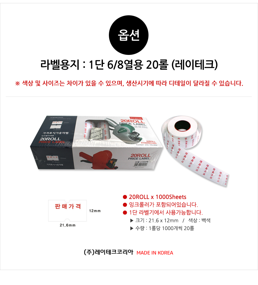 • 레이테크 라벨용지 1단 6열 8열 20롤