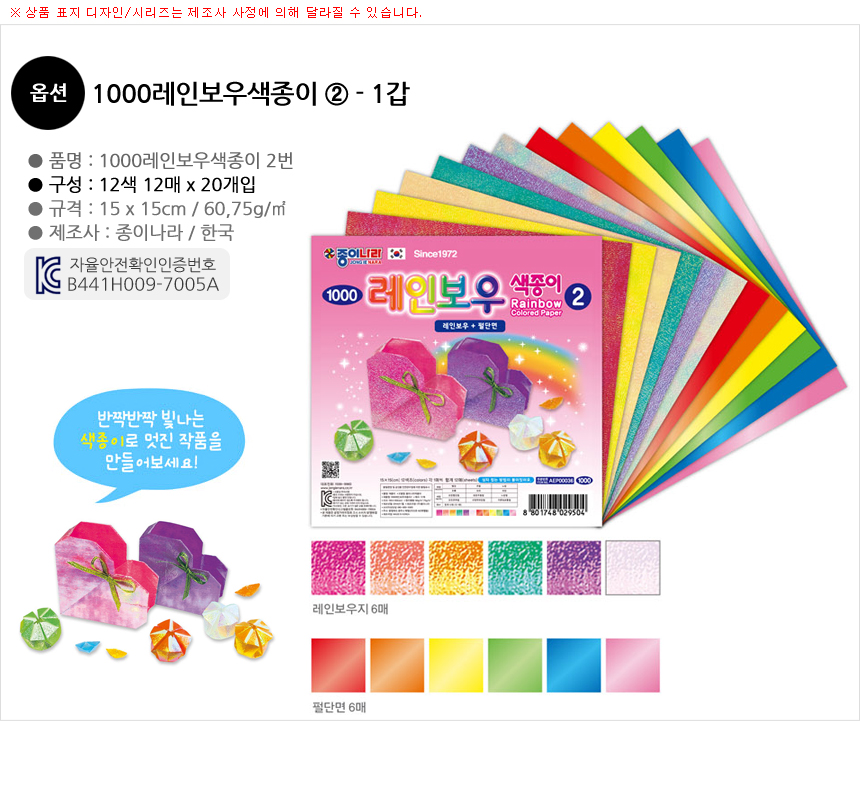 종이나라 1000 레인보우 색종이2 1갑품 요약정보 및 구매