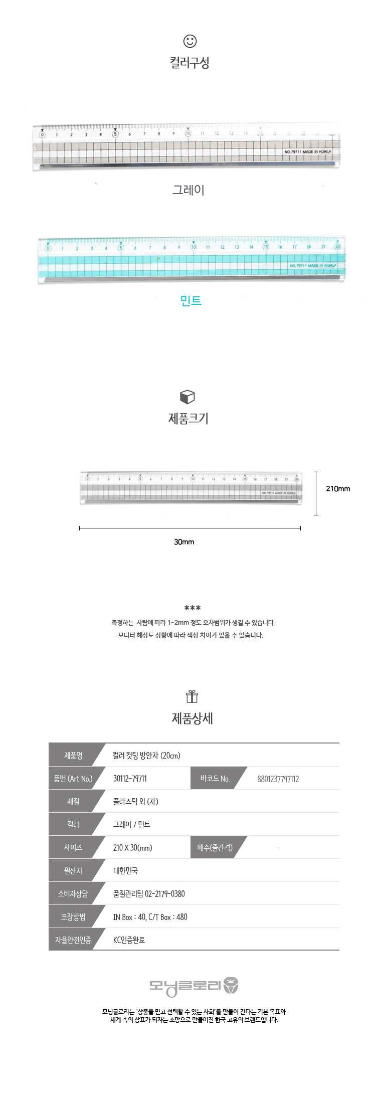 모닝글로리 컷팅 방안자 20cm 눈금 플라스틱 투명자 요약정보 및 구매
