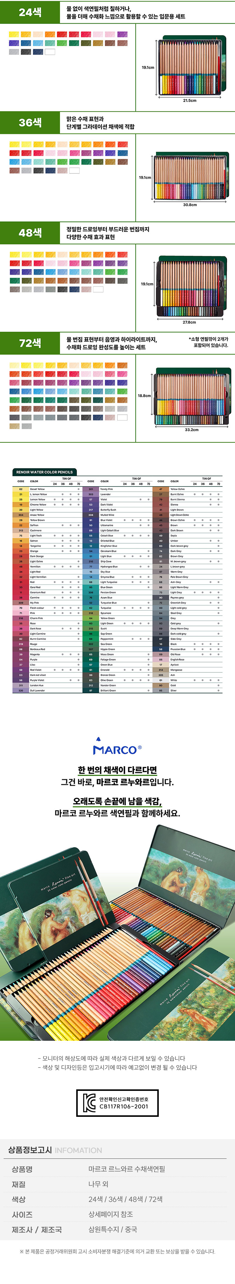 마르코 고급 수채색연필 르누아르 72색 틴케이스 요약정보 및 구매
