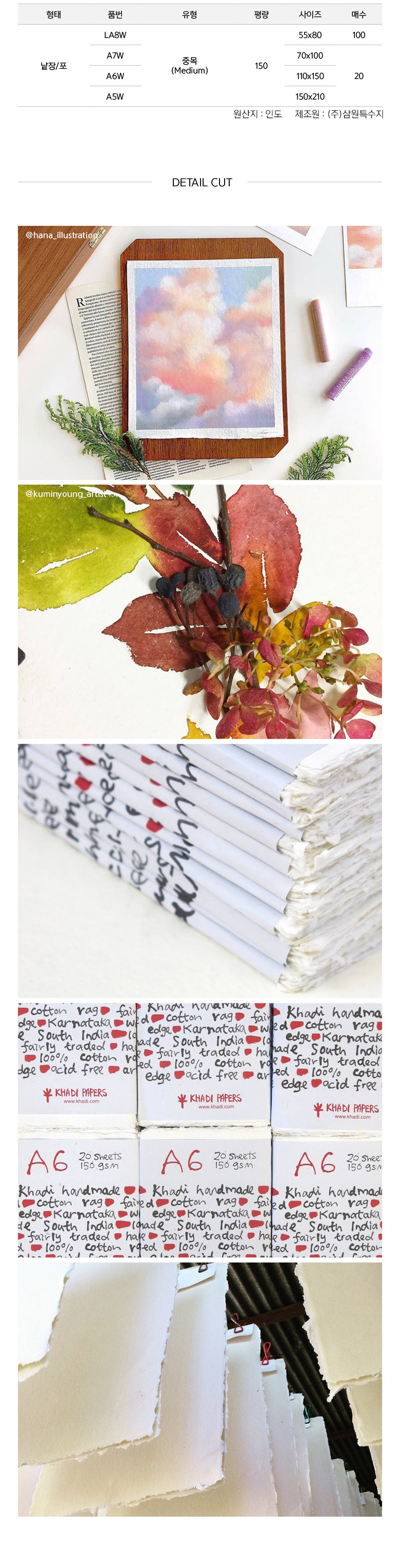 삼원 카디 A6 코튼 페이퍼 중목 A6W 20매 150g 요약정보 및 구매