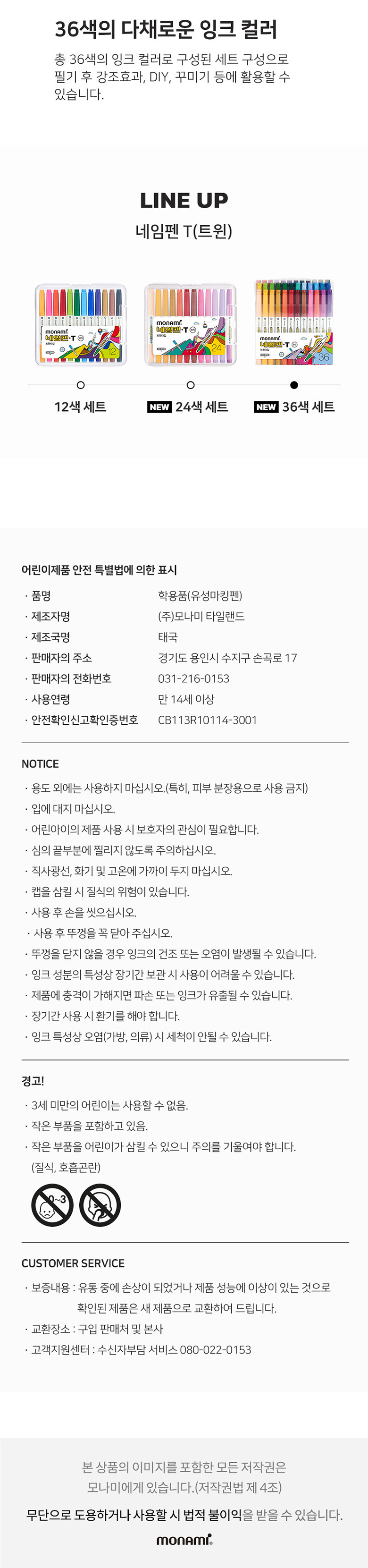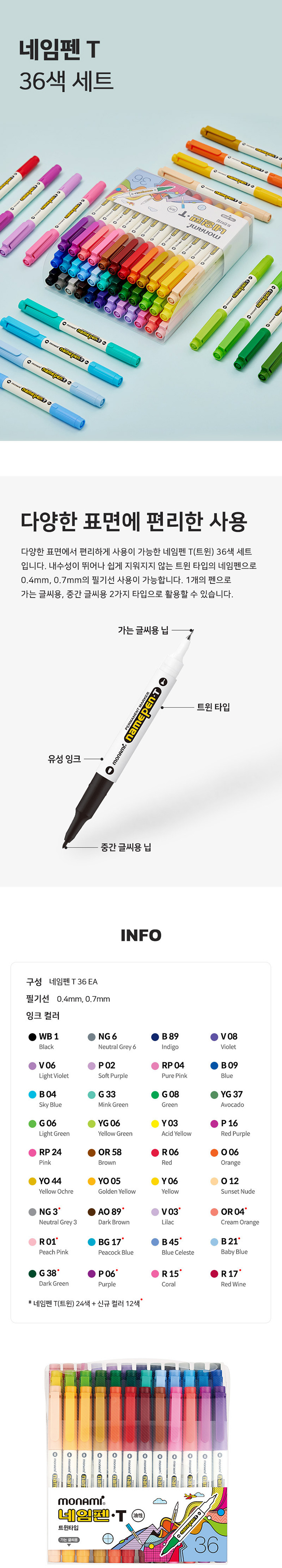 모나미 네임펜 T 트윈 36색 세트 양방향 요약정보 및 구매