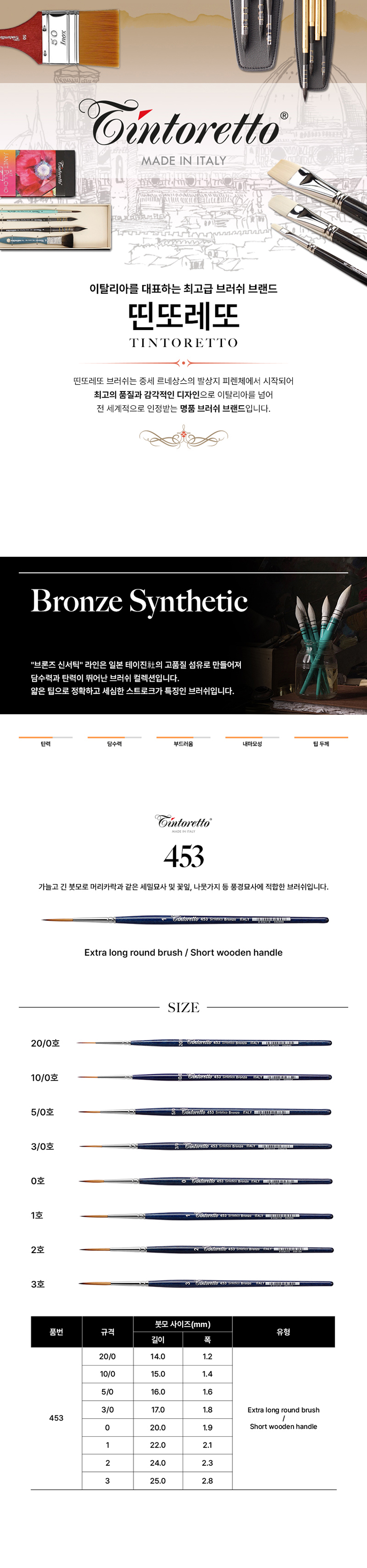 띤또레또 브러쉬 453/2 세필 둥근붓 라인 수채화 아크릴 과슈 미술 요약정보 및 구매