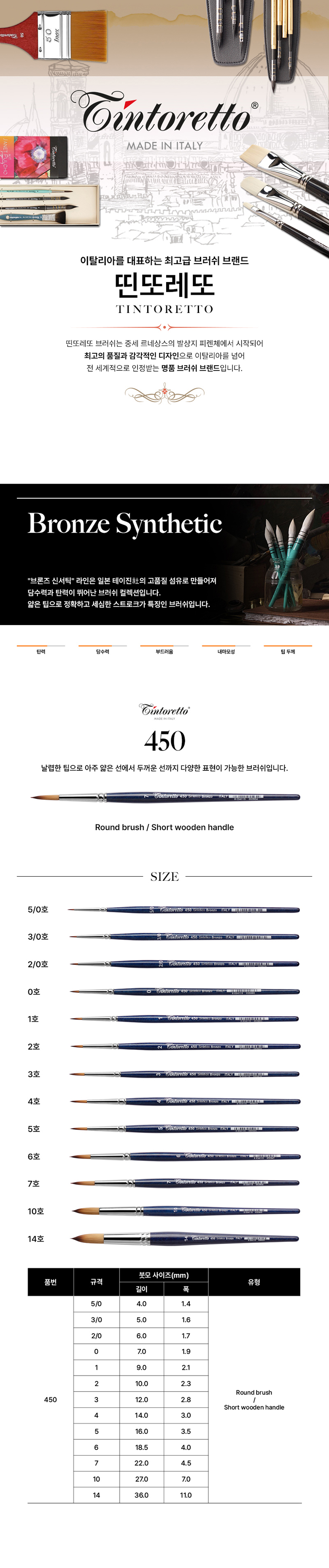 띤또레또 브러쉬 450/7 둥근붓 라운드 수채화 아크릴 과슈 미술 요약정보 및 구매