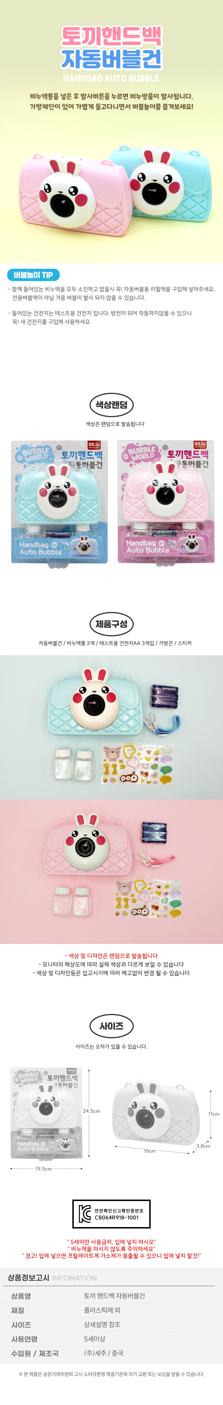 세주 13000 토끼 핸드백 자동 버블건 색상랜덤 발송 요약정보 및 구매